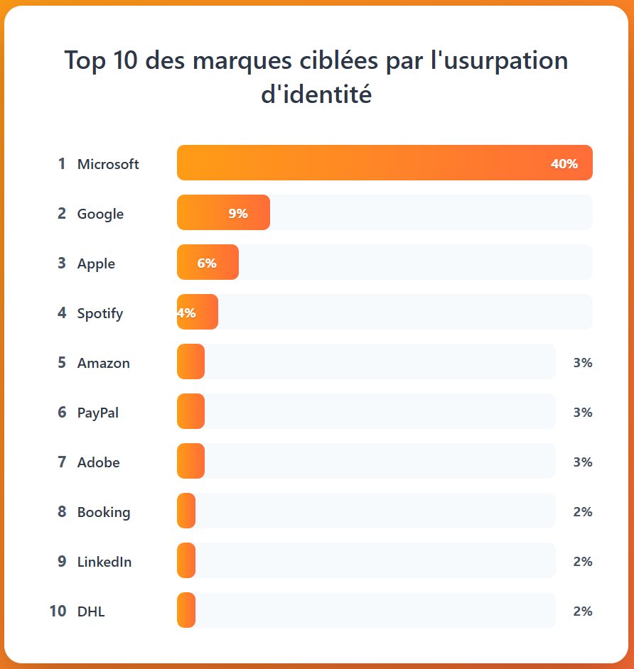 Sans surprise, les trois marques les plus usurpées sont Microsoft, Google et Apple. Meta est absent de la liste, tout comme Netflix, ce qui est une bonne chose, car la plateforme n’a pas encore intégré de clés d’accès ni même d’authentification à deux facteurs à ses comptes.